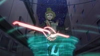 Similar to a machine, Ether Gear utilizes the Ether that flows from the user's body and rearranges it by turning it into power, making the user into a "mechanical wizard" of sorts.[2] This gives its users the ability to manipulate certain elements such as gravity[3] and wind,[4] reconfigure machines,[5] create swords using Ether,[6] or even completely alter the material composition of objects the user touches.[7] However, Ether Gears have a peculiar weakness, in that they become completely unusable whenever the wielder's hands are bound or wrists are tied.[8][9] However, these deficits can be remedied via training to overcome physical restraints, but even then utilizing one's Ether Gear when restrained takes a great deal of practice.[10] They are also negatively affected when exposed to an Electromagnetic Pulse, which temporarily disables them from using their powers.[11]