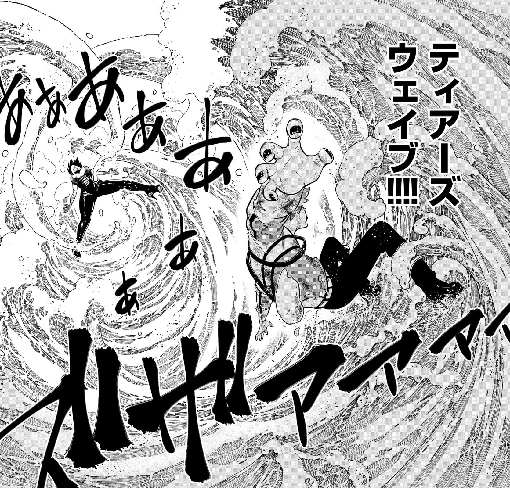 Ijuna tells Laguna that what makes Shura strong is that he does not know love and that he would take a life without a moment's hesitation. She pulls her red strings tightly around Laguna's neck, stating that she needs to learn from his example before bidding him goodbye and severing his head. However, she is shocked when Laguna's head and body turns into water, learning that he made himself cry in order to do that. She is elbowed in the jaw by him who emerges from his puddle and proclaims that it is Acting 101. Landing on her feet, she uses String Needle to attack Laguna, who dodges it with ease. Being questioned how she learned her Ether Gear, Ijuna reveals that she learned it in the empire and explains how her Red Destiny works, deeming it a perfect power for her. She is shocked to hear Laguna calling her an actor and deduced that she used her Ether Gear on herself. Ijuna denies it, believing she and Shura are joined by destiny and tells Laguna to shut up, asking what does he know about a couple bound by destiny. Charging towards her enemy, Ijuna yells that she is an Imperial soldier and fights for Shura. She attacks Laguna with her red threads but the latter's water washes them away much to her surprise. She tries to rebuke Laguna's remark that her heart is weakening before she is defeated by his Tears Wave. Shedding tears, Ijuna turns into water and her red string tied to Shura breaks. She returns to normal as she is caught in Laguna's arms. Freed, she asks Laguna what happened before questioning about the sumo bot standing there.[17]