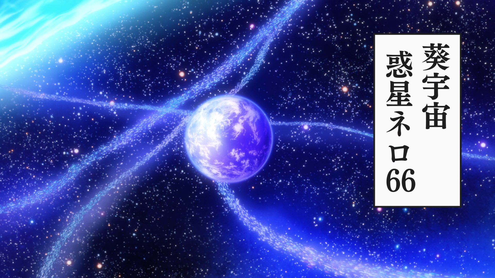 Nero 66 is a planet where the atmosphere above has what appears to be varying masses of clouds reaching out to space and also has streams of space fish flowing towards it, while also having a constant storm of what appears to be ash flowing in the atmosphere. The architecture seems to consist of tall rectangular buildings of varying heights. It houses the All-Link System, a system that commands all of the bots in the Aoi Cosmos and is the last resort allowed only to the rulers of The Temple. Like the other planets of the Aoi Cosmos, a stream of space water flows near it.[3]